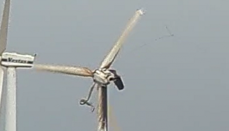 El fuerte viento que sufría Lanzarote este pasado miércoles hico que terminara por romperse el aerogenerador de Montaña Mina que llevaba descontrolados desde hacía semanas.