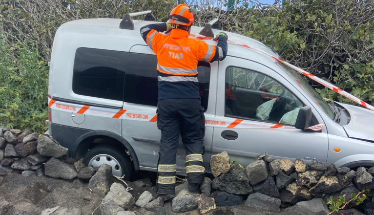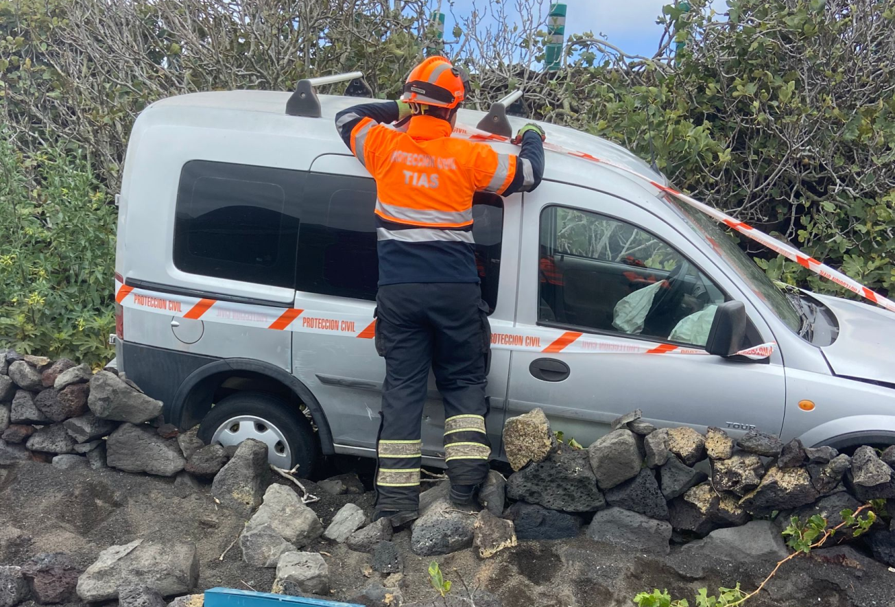 Un coche se salió de la vía este domingo por la mañana en el cruce entre las carreteras de La Asomada y Conil en el municipio de Tías, según ha informado Protección Civil.