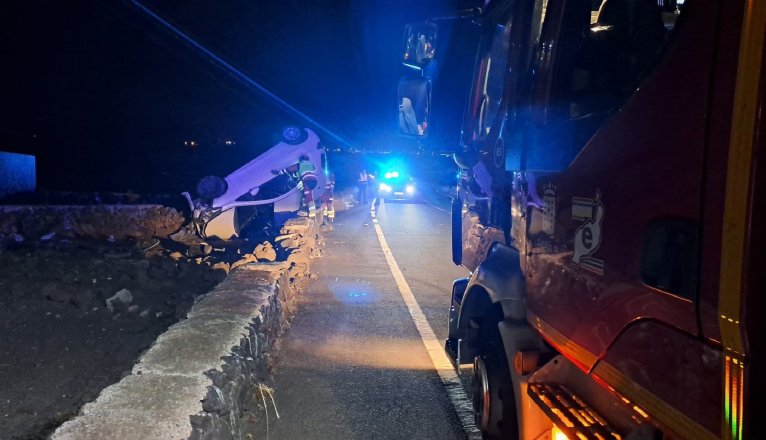 El dispositivo de Emergencias comprobó que se trata de un accidente de tráfico con un único vehículo implicado, que había sufrido una salida de vía y se encontraba volcado sobre el techo.