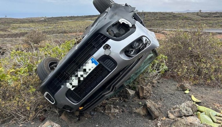 Un vehículo volcó en la tarde este martes 1 de julio en la carretera LZ-201, que une Arrieta con Ye, a la altura del kilómetro 6.