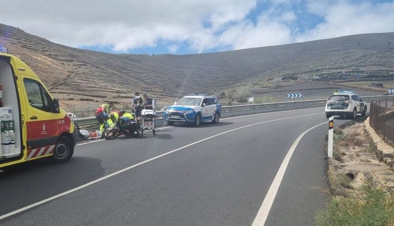 Un ciclista ha tenido que ser atendido este martes tras sufrir una caída en Arrieta. Los hechos han ocurrido sobre las 12.45 horas en la subida de Arriera a Haría.