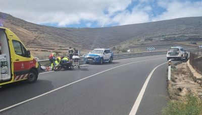 El hombre de 35 años ha sido auxiliado por los efectivos de emergencia y los agentes de la Policía Local y la Guardia Civil. Después, ha sido trasladado en una ambulancia de soporte vital básico del Servicio de Urgencias Canario (SUC) al Hospital Molina Orosa por heridas y erosiones leves en la cara.