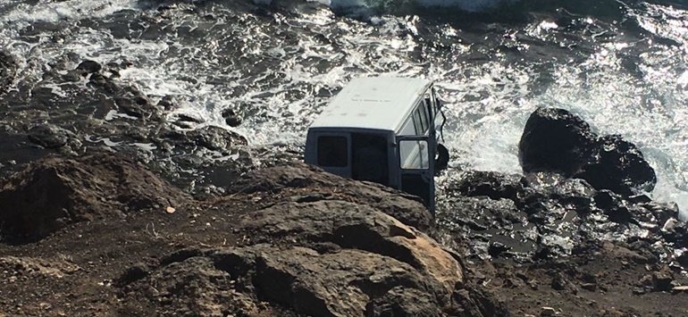 Una furgoneta se ha precipitado este martes al mar en la zona de Puerto Calero aunque, por suerte, su conductor no estaba dentro y no ha habido que lamentar daños personales.