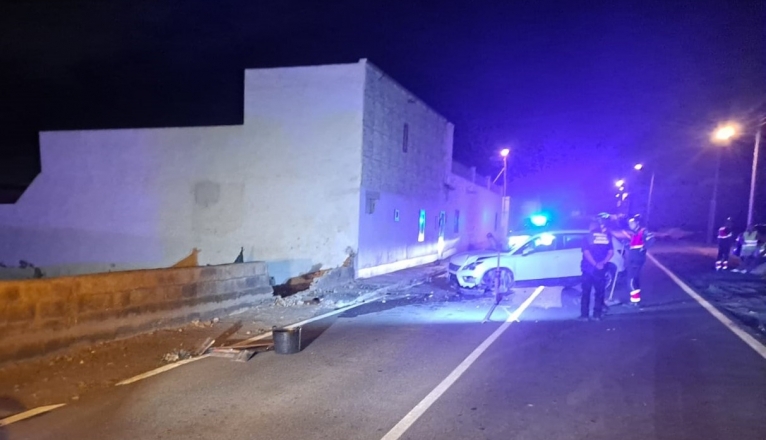 Nuevo accidente en las carreteras de Lanzarote. Este jueves por la noche un vehículo chocaba contra un muro en el camino de Arrecife a Güime, según ha informado el Consorcio de Emergencias.