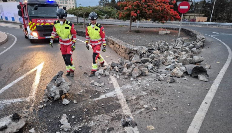 El Consorcio de Seguridad y Emergencias de Lanzarote intervino este domingo en la limpieza de la calzada en la calle Manolo Millares, en Arrecife, tras un accidente de tráfico en el que un coche se llevó por delante un muro de piedras. Según ha podido saber La Voz, el conductor pudo haberse quedado dormido y perdió el control del coche.