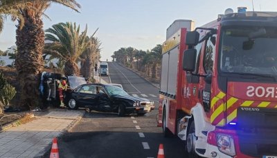 Alertados por el Centro Coordinador de Emergencias y Seguridad (CECOES) de Lanzarote, un dispositivo de emergencias se trasladó hasta la avenida de Las Palmeras de Costa Teguise, tras una colisión de un vehículo contra otro estacionado en la localidad costera de Teguise.