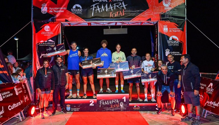 Tras la llegada de los corredores al muelle de Caleta de Famara, comenzó la entrega de trofeos en un ambiente festivo, amenizado por el grupo Bourbon y el DJ Iván García, que dieron ritmo a la primera noche de la Famara Total.