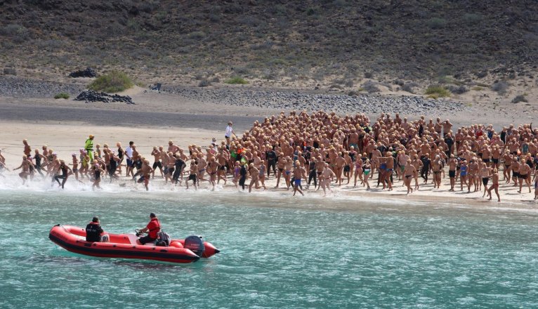 Medio millar de nadadores se lanzaron al agua de la playa de Bajo Risco en la XXIX edición de la Travesía a Nado “El Río”, prueba que volvió a unir a Lanzarote y La Graciosa.
