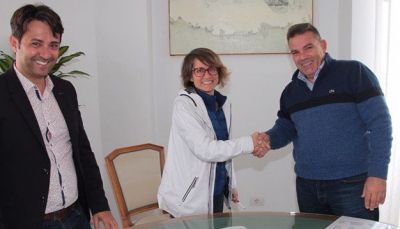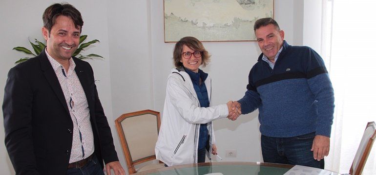La alcaldesa, Eva de Anta, y el presidente de la Federación Canaria de Piragüismo, José María García, sellaron este miercoles el convenio de colaboración que permitirá acoger el 8 de febrero a cientos de piragüistas en la marina capitalina, con la celebración de la Atlantic Ocean Surfski Lanzarote.