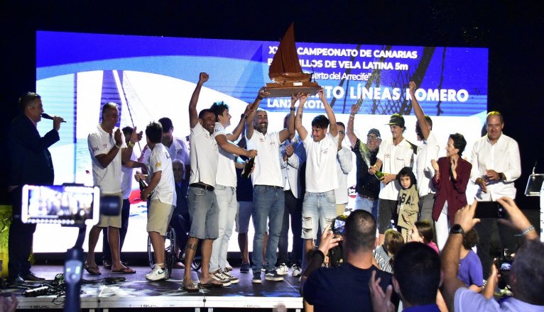 Arrecife se ha convertido durante dos fines de semana en el epicentro de los barquillos de vela latina, con la celebración de la trigésima cuarta edición del Campeonato de Canarias de Barquillos de Vela Latina de 5 Metros “Ciudad y Puerto del Arrecife”. Las ocho regatas celebradas en la bahía de la capital de Lanzarote coronó al Romerito de David Martín como nuevo campeón de Canarias, acompañado en el podio por el Tritón y el Graciplus. La entrega de trofeos celebrada en la tarde del sábado pone el colofón al XXXIV Campeonato de Canarias de Barquillos de Vela Latina.