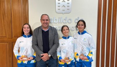 El consejero de Actividad Física y Deportes del Cabildo de Lanzarote, Juan Monzón, recibió recientemente a las tres lanzaroteñas campeonas con la selección canaria infantil femenina en el Campeonato de España de Selecciones Autonómicas (CESA).