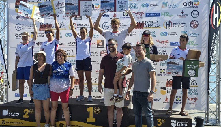 El pasado fin de semana, el Club Natación Nadamas volvió a demostrar su excelente nivel competitivo en aguas abiertas durante la XXVI Travesía a Nado Isla de Lobos, una de las pruebas más emblemáticas del Archipiélago Canario. El equipo lanzaroteño, representado por cinco de sus nadadores, completó una destacada actuación, ubicando a todos sus representantes entre los ocho primeros puestos de la clasificación general, y sumando un total de cinco medallas: dos de oro, dos de plata y una de bronce.