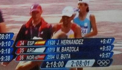 Al paso del kilómetro 15, José Carlos Hernández había perdido dos posiciones, pasando al puesto 54, y siendo adelantado de nuevo por el español Ignacio Cáceres. Dos corredores (uno de Letonia y otro de Estados Unidos) se habían retirado ya de la carrera.