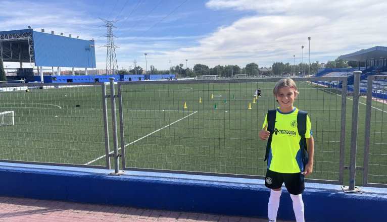 El jugador de categoría benjamín inició su trayectoria deportiva en el San Bartolomé C.F. y actualmente forma parte del Getafe C.F., donde sigue creciendo como deportista y persona.