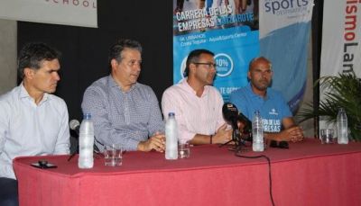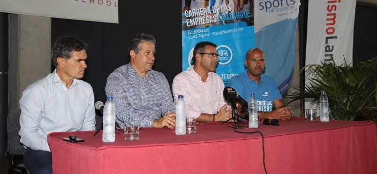Este miércoles tuvo lugar la presentación de la Carrera de las Empresas de Lanzarote en el Aqua & Sports Center Lanzarote, en un acto en el que estuvieron presentes el alcalde de Teguise, Oswaldo Betancort, el director gerente de la Sociedad de Promoción Exterior de Lanzarote, Héctor Fernández, así como Jaime Rodríguez y Jonai Díaz, director gerente y director deportivo, respectivamente, del Aqua & Sports Center.