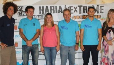 Las instalaciones del Sands Beach Resort en Costa Teguise acogieron la presentación de la tercera edición de la Haría Extreme. El Ayuntamiento de Haría estuvo representado con la presencia de su alcalde José Torres Stinga y el concejal de deportes, Cristian Avero. Estuvieron acompañados por Fernando González, Director de la Carrera, y los representantes de Sands Beach, Juan Carlos Albuixech, y de Naviera Armas, Gema Ibañez, patrocinadores principales de la prueba que se celebrará el próximo sábado 15 de junio.