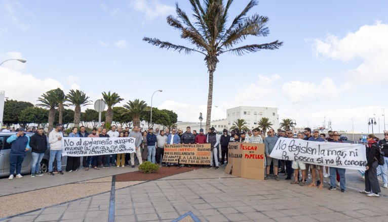 Decenas de pescadores se han concentrado en la mañana de este lunes en Puerto Naos, en Arrecife, para sumarse al paro nacional contra el nuevo Reglamento Europeo de Control de la Pesca. En dicha movilización todas las cofradías de pescadores de Lanzarote se reunieron a las 14.00 horas en señal de protesta. Mientras tanto, los pescadores de La Graciosa lo hicieron en la isla vecina a las 12.00.
