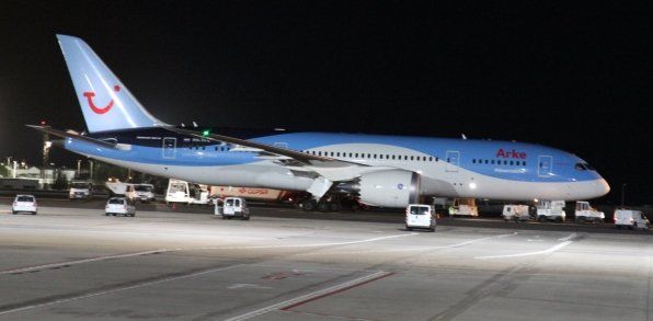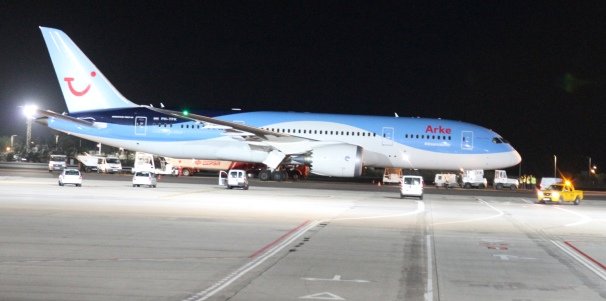 El aeropuerto de Lanzarote recibió este martes por primera vez el aterrizaje del que se ha convertido en uno de los modelos emblemáticos del fabricante estadounidense Boeing, el B-787 Dreamliner. Operado por la compañía TUI Airlines Nederland, el vuelo que procedía de Ámsterdam con escala en Fuerteventura, con 204 pasajeros a bordo, aterrizó alrededor de las 19:00 horas en el aeropuerto de Guacimeta.