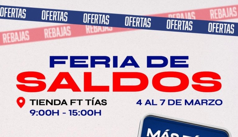 Grupo FT celebra del 4 al 7 de marzo su Feria de Saldos en la tienda de Tías, en horario de 9:00 a 15:00 h, con una acción de liquidación pensada para quienes quieren ahorrar de verdad en compras que importan.