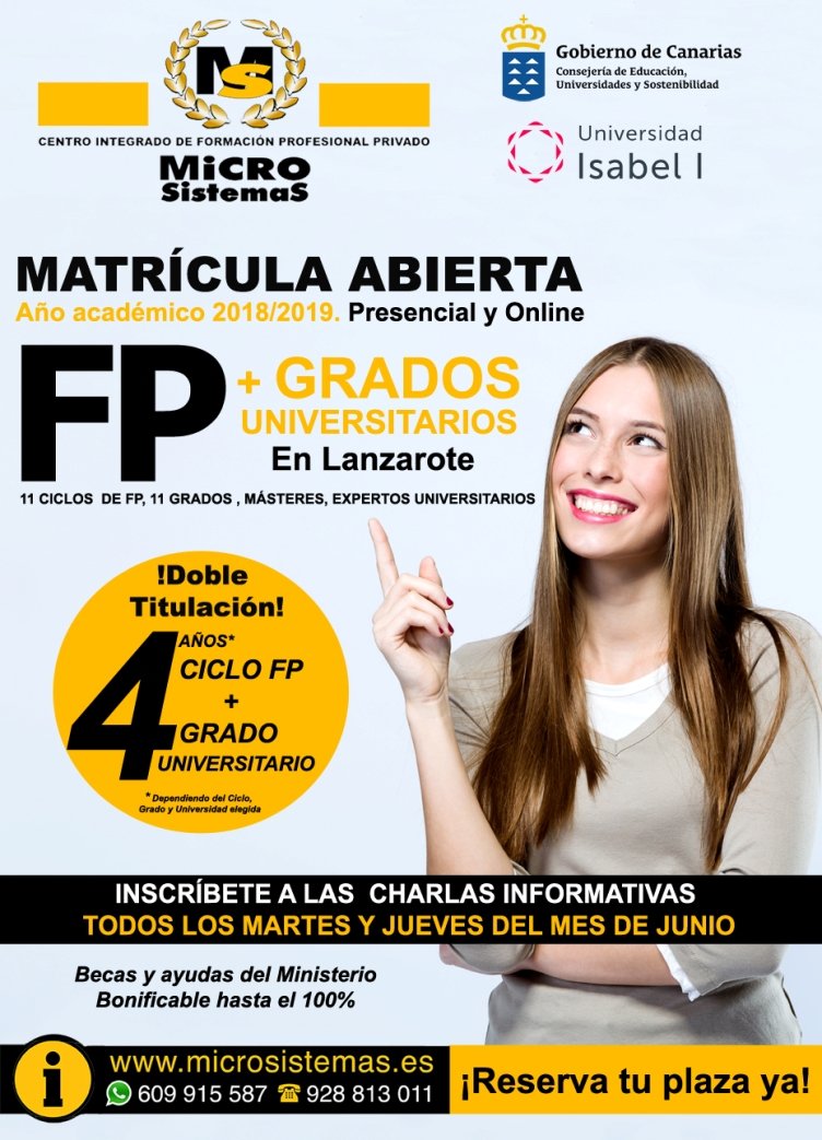 El C.I.P.F.P Microsistemas da otro gran salto cualitativo en la formación, uniéndose a la Red de Centros Integrados de Formación Profesional Nacionales. Sin duda una muy buena noticia para la sociedad lanzaroteña.