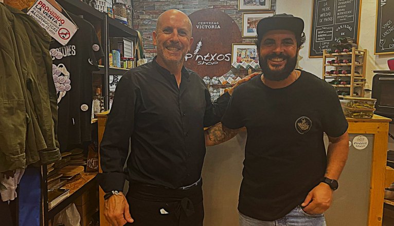 Pipo Duque y Nauzet Morales son tío y sobrino y siempre han estado vinculados a negocios hosteleros. Hace seis años decidieron abrir un negocio propio, Pintxos Shop en su pueblo, la Villa de Teguise. Allí, cada día Morales elabora nuevos pinchos de inspiración vasca, pero con producto y sensibilidad canaria.