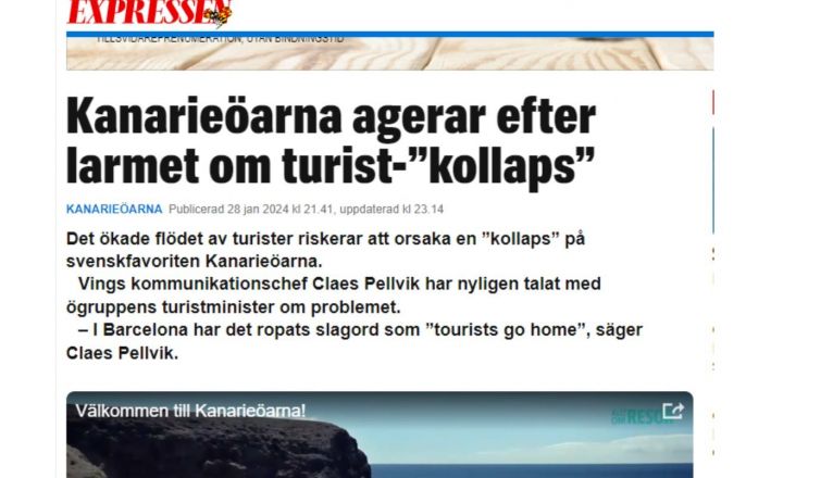 Según publica el portal de noticias turísticas tourinews.es el segundo mayor periódico de Suecia, Expressen, ha publicado varias informaciones que ponen el foco en conceptos como el "odio a los turistas en Canarias", "colapso", o descontento de los trabajadores de la limpieza en los hoteles, que se asocia a términos como "esclavitud".