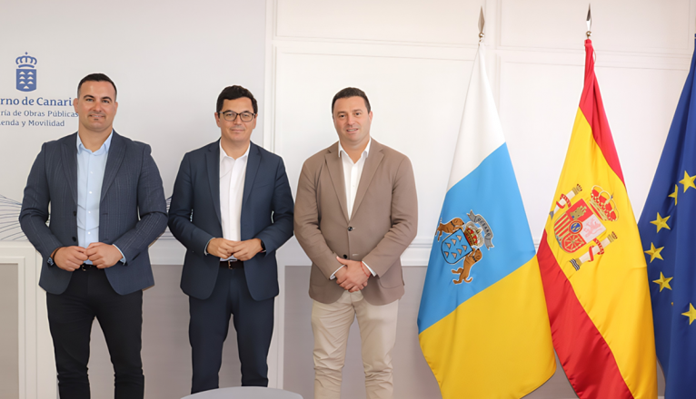 Pablo Rodríguez y Óscar Noda se reunieron en la sede de la Consejería en Gran Canaria en un encuentro también participado por el concejal de Obras Públicas de Yaiza, Ángel Lago, y dos técnicos municipales, para tratar iniciativas en materia de vivienda, carreteras y puerto. El plazo de ejecución mínimo para las obras de las 136 viviendas es de 18 meses.