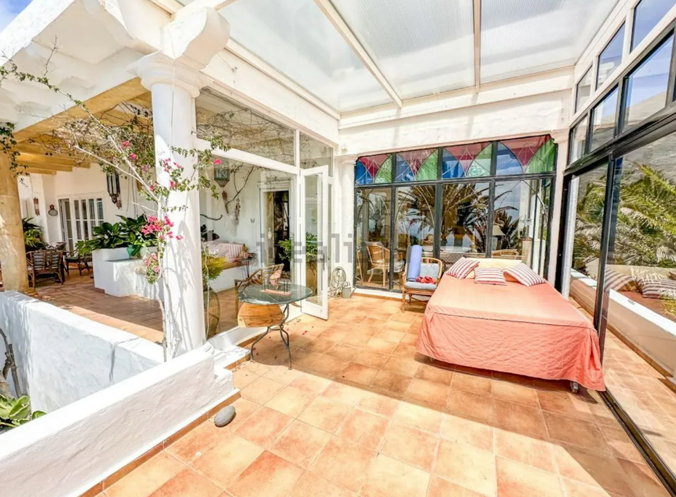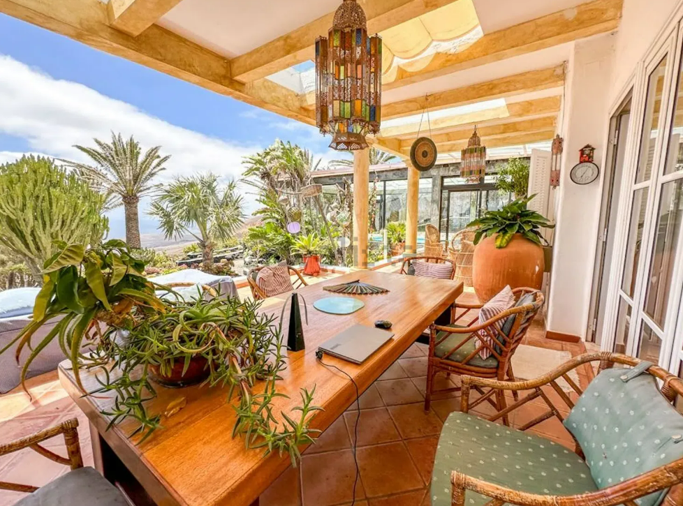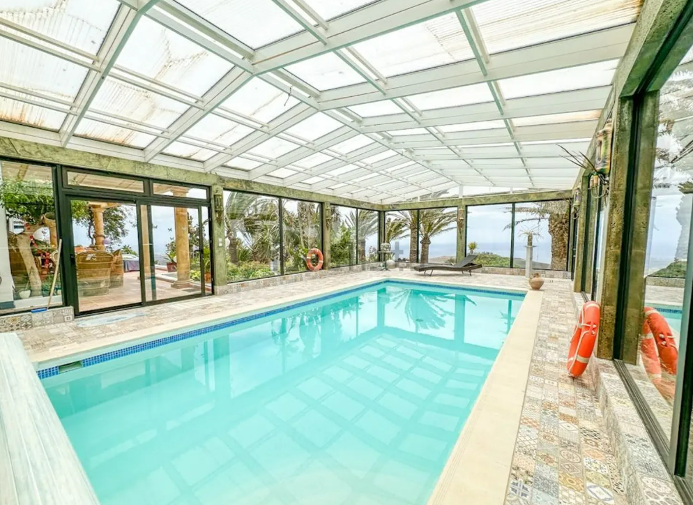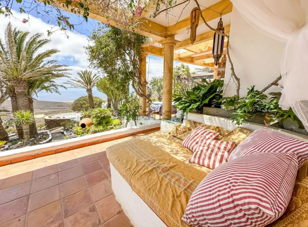 La casa principal cuenta con tres habitaciones y tres baños, así como bodega, piscina cubierta climatizada, e impresionantes vistas al mar y a la isla de Fuerteventura.