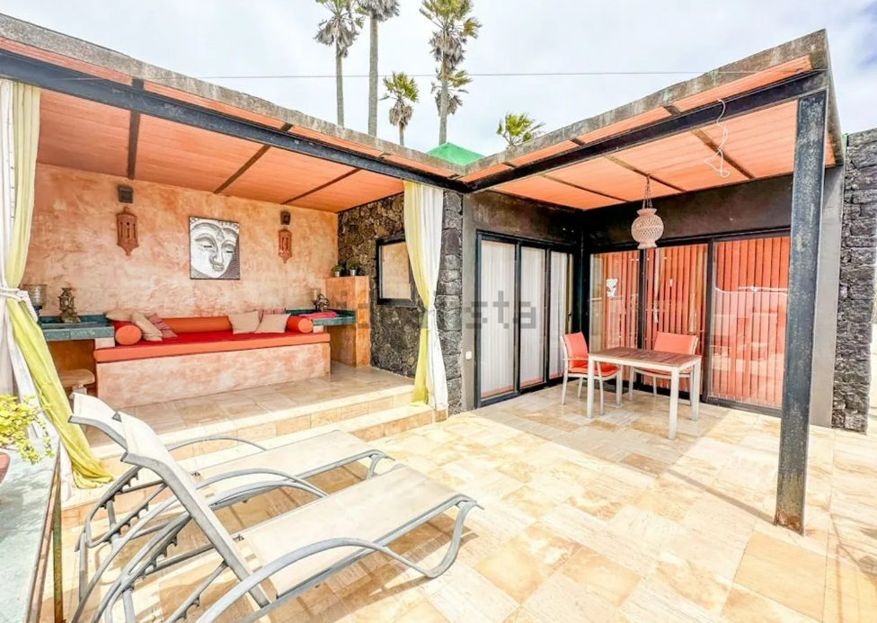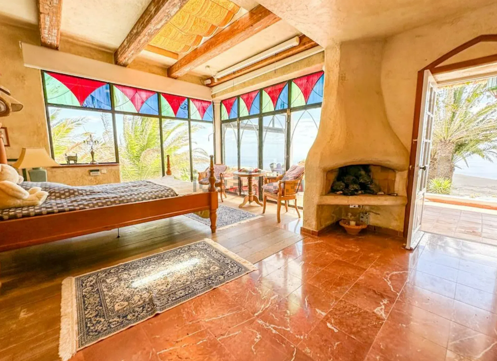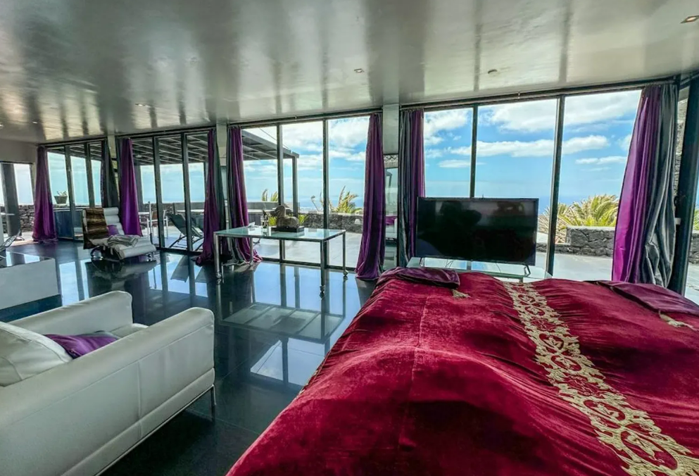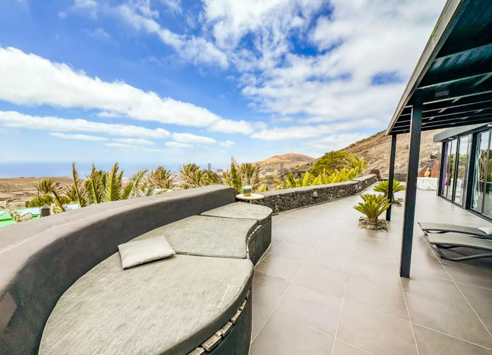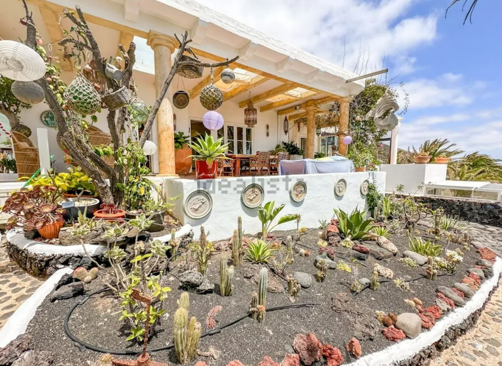 La casa principal cuenta con tres habitaciones y tres baños, así como bodega, piscina cubierta climatizada, e impresionantes vistas al mar y a la isla de Fuerteventura.