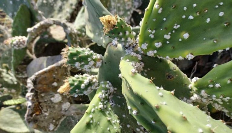 The carmine cochineal, or Mexican cochineal (Dactylopius opuntiae), which mainly affects the prickly pear, has been declared a plague by the Ministry of Agriculture of the Government of the Canary Islands. It was discovered in the archipelago in 2010, in the municipality of Fuencaliente in La Palma.