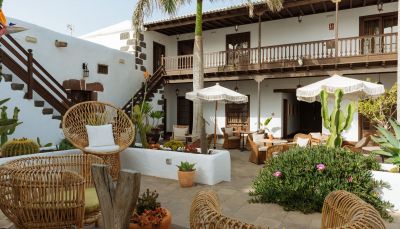 Its interior includes large wooden coffered ceilings, original floors, both in mulberry and XVIII century tea wood, stone walls more than half a meter wide, and a typically Canarian interior patio, which overlooks the rooms and the restaurant.