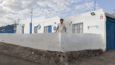 A small white house with blue windows and doors is the only piece of local history that remains in the last built-up corner of Playa Blanca (Yaiza), just before entering the Papagayo beaches on foot, in the Los Ajaches Natural Monument. Located on the so-called El Afre beach, which stretches for just under half a kilometer of cliffs and black sand, this house has survived for more than a hundred years in an area famous for its urban speculation and for having housed the stretch of coastline with the most illegal hotels in Spain.