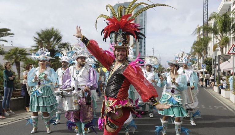 Arrecife's daytime Carnival kicked off at eleven in the morning with a colorful parade. At that time, troupes and batucadas displayed all their rhythm and color along the capital's avenue.