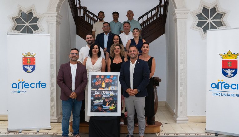 The Agustín de la Hoz House of Culture hosted this Tuesday the official presentation of the poster and program of the San Ginés 2025 Festivities, patron saint of the municipality of Arrecife, in a press conference headed by the mayor, Yonathan de León; the deputy mayor and head of Festivities, Echedey Eugenio; and the Minister of Culture of the Cabildo de Lanzarote, Jesús Machín.