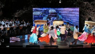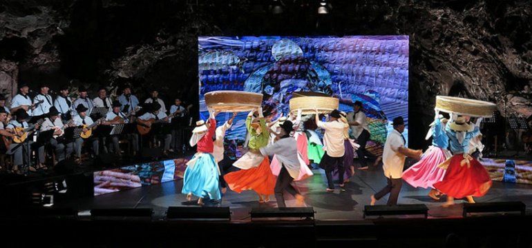 The show displays the natural landscapes that Lanzarote offers to visitors such as La Geria, the Salinas de Janubio, Los Hervideros, as well as its volcanoes, beaches and popular architecture, elements highly valued by the thousands of visitors who arrive on the island every day and to which are also joined the ancestral traditions manifestations that Los Campesinos brought to the stage of Los Jameos such as the music and liturgical songs that the Ranchos de Pascuas perform every Christmas.