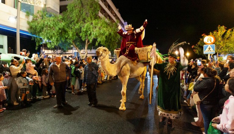 Arrecife was once again filled with excitement this January 5th with the celebration of the Great Three Kings Parade, one of the most anticipated events of the Christmas calendar. The parade began around 6:00 PM from the Puerto Naos roundabout, next to Agramar, and culminated in Islas Canarias Park, drawing hundreds of families along the entire route.