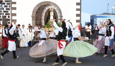 The greeting of a horseman, as has been customary for several years, opened the offering to the Virgen de los Dolores. The Timbayba Folk Group, from Tinajo, was the first to perform before the Patron Saint of the island, to whom they offered a heartfelt folía. The performance of Chago Melián, who was part of the Haría delegation, moved a devoted audience.