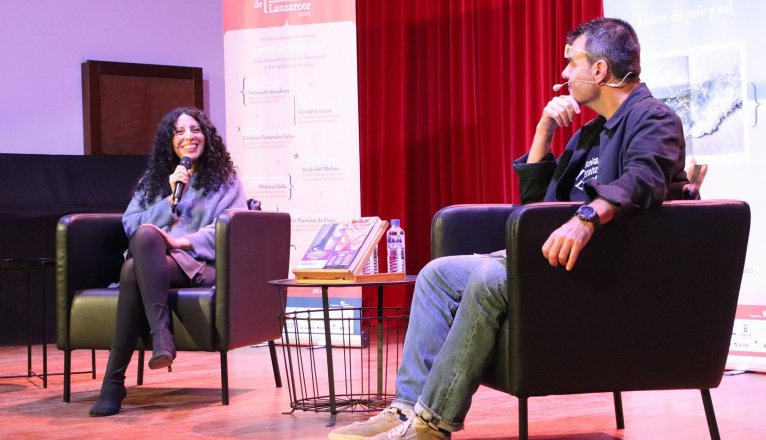 Ojeda, who was visiting Lanzarote for the first time, opened the conversation with a luminous confession: "I started leaning towards literature not so much because of books, but because of my grandfather's voice". He recalled how that grandfather, a "great oral storyteller," twisted stories towards the disturbing: "Life always enters into what you are telling, even if you pretend it doesn't".