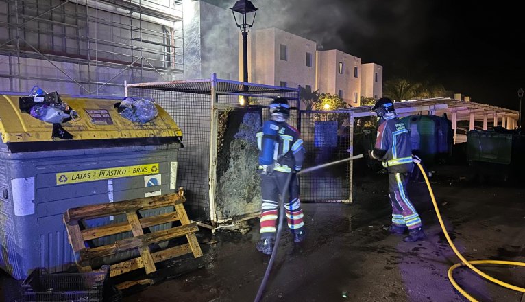 A fire that broke out early Saturday morning has destroyed several containers and a lamppost on Las Olas street, in Costa TeguiseAccording to the Lanzarote Security and Emergency Consortium, the alert was received at 01:54 hours through the CECOES, reporting a burning dumpster in the area. Firefighters from the central station, with the Bravo 4 crew and intervention level 2, were dispatched to the scene.