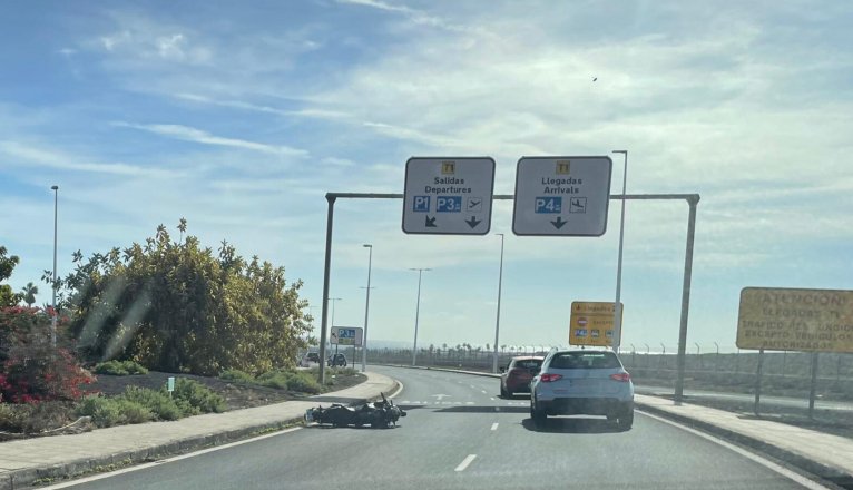 A motorcyclist was injured in an accident involving two other cars at Lanzarote's César Marique Airport. The motorcycle fell as a result of the impact
