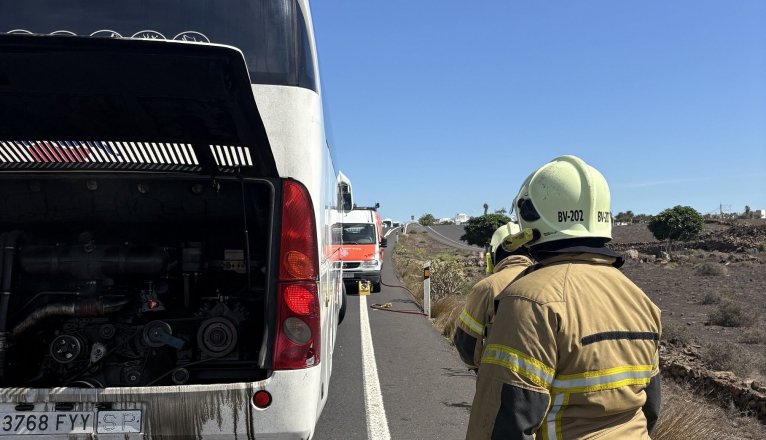 An emergency team was dispatched on the morning of Sunday, October 26th to the LZ-02, near the cemetery in Tías, due to the risk of fire in a bus.