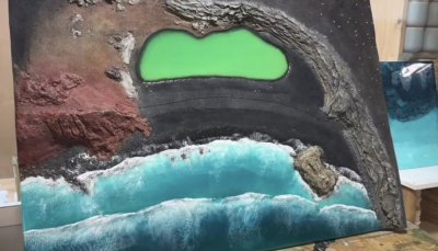 Varela has been showing the creation process on Instagram and TikTok in several videos, from the beginning with the polystyrene to make the base to the work with paint and resin to create the details of the water and sea foam
