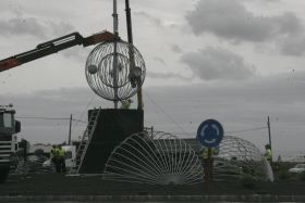 César Manrique's work will once again be present in the roundabout that bears his name. The 'Wind Toy' has begun to be installed again in its old location, after almost ten months of absence. And Manrique's mobiles also suffered the consequences of the tropical storm Delta.