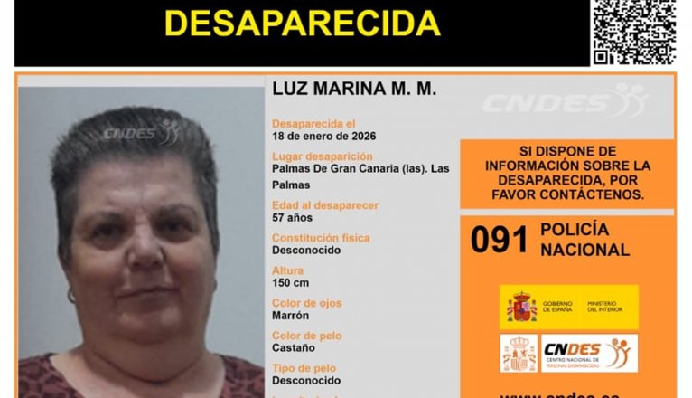 The National Police are asking for public assistance to locate Luz Marina MM., a **57-year-old** woman who has been missing since Sunday, January 18, in the Los Giles area of Las Palmas de Gran Canaria.