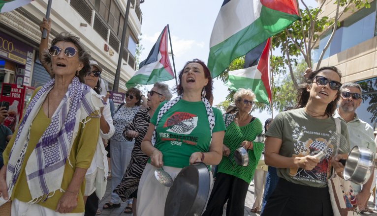 Caceroladas, Palestinian flags and banners for the end of the genocide in Gaza have toured the streets of Arrecife this Saturday. The Lanzarote with Palestine collective has carried out a protest action on the morning of this August 30 in the capital of the island to demand that the Israeli forces stop occupying the Gaza Strip and peace be established in the area.