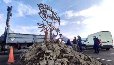 Technicians and operators from the Art, Culture and Tourism Centers proceeded this Wednesday to replace the "Bird-Fish" sculpture, which presides over the entrance and welcomes visitors to the Mirador del Río.