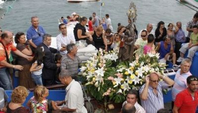 The boats made their stop, getting as close as possible to the boat carrying the Virgin, to, as every year, make the floral offering for all the deceased sailors. After taking her back to the port, the image returned to the parish where, between fireworks, firecrackers, applause and rockets, she said goodbye to all her parishioners.