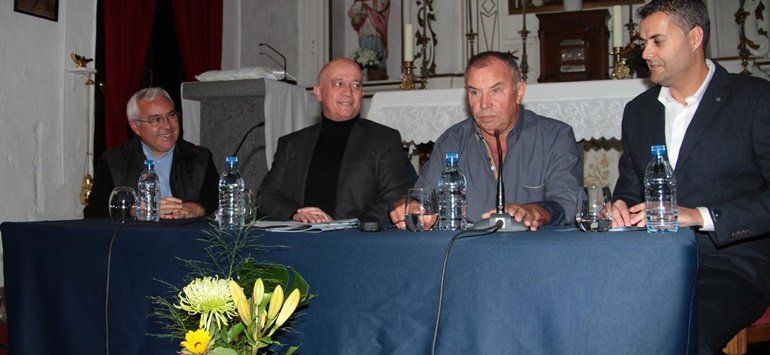 Next, the mayor of the municipality, José Francisco Hernández, the Councilor for Festivities, Francisco Javier Aparicio, and the parish priest Agustín Lasso presented him with a ceramic as a souvenir and, as a finishing touch, the members of the musical group El Pavón performed folias, seguidillas and parranderas isas.
