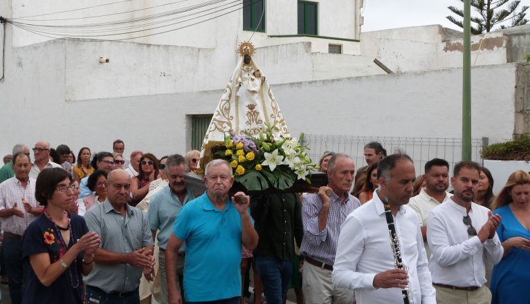 At 6:30 p.m., after the Angelus prayer, the image of Our Lady of Regla went out in procession accompanied by the chords of the Tinajo Municipal Music Band Peña de San Roque directed by Professor Orlando Morales, together with the parish priest of the municipality, Francisco José García, the mayor Jesús Machín, the councilors and the residents making the journey to the Yacomar Socio-Cultural Center, located in the heart of La Vegueta. At that point, a group of residents awaited the arrival of the image, which was received with applause, then the celebration of the Eucharist began, presided over by the parish priest Francisco José García, enlivening the songs of the celebration with Canarian airs by a group of residents.