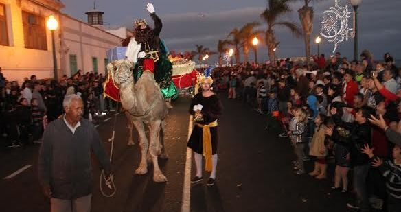 During the tour, the monarchs and royal pages have thrown three tons of candies as they passed through the maritime avenue. The entourage has been made up of about 250 extras. 15 dromedaries, the Rancho de Pascua de Tinajo, a brass band and the stilt walkers and jugglers from the Lanzarote Circus School have accompanied the Three Wise Men.